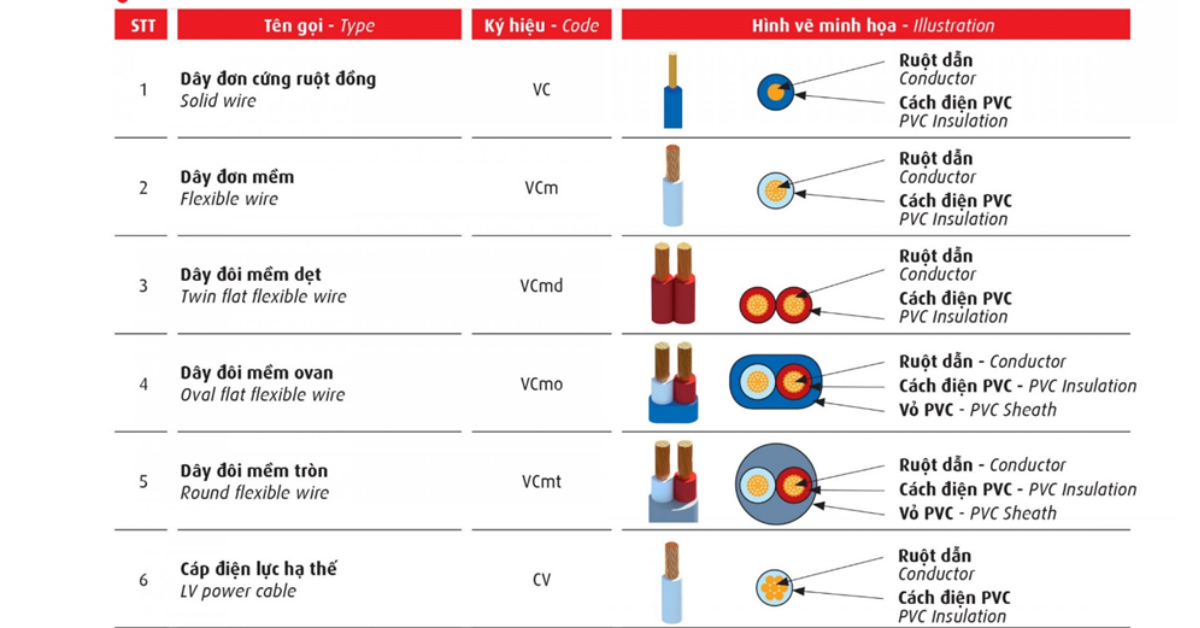 Việc nắm rõ các ký hiệu này giúp người dùng không chỉ biết cách đọc thông số trên dây cáp điện mà còn có thể đánh giá sơ bộ chất lượng và mức độ phù hợp của cáp với dự án của mình.