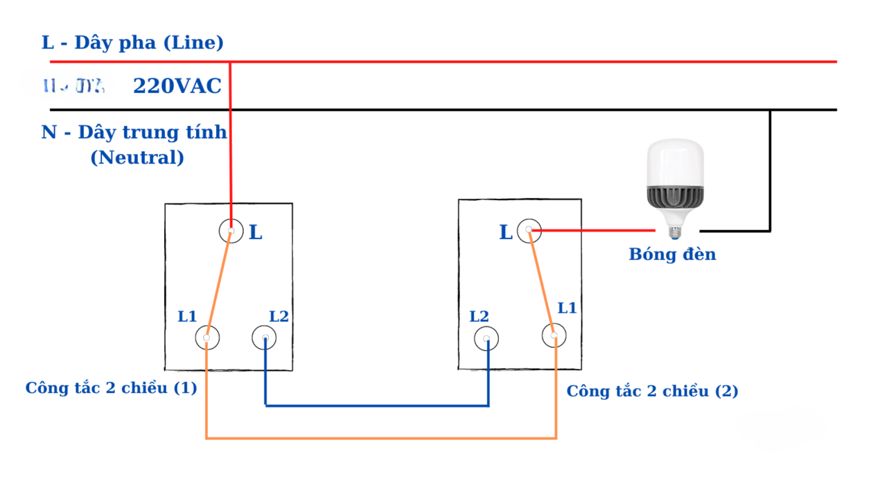 Chi tiết cách đấu công tắc điện 2 chiều