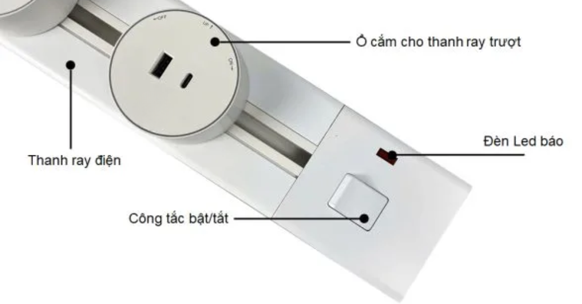 Thanh ray dẫn điện (Track): Thường được đúc từ nhôm nguyên khối sơn tĩnh điện để đảm bảo độ cứng cáp và tản nhiệt tốt. Bên trong thanh ray là hệ thống lõi đồng dẫn điện được bọc cách điện cực kỳ cẩn thận, đảm bảo an toàn ngay cả khi bạn chạm tay vào khe rãnh của thanh ray.