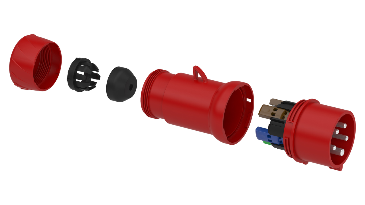 Phích cắm công nghiệp chủ yếu là dạng di động (phích cắm đực), được nối với dây dẫn của thiết bị. Thiết kế của chúng thường có phần đuôi kẹp giữ cáp chắc chắn để tránh bị tuột dây trong quá trình sử dụng.