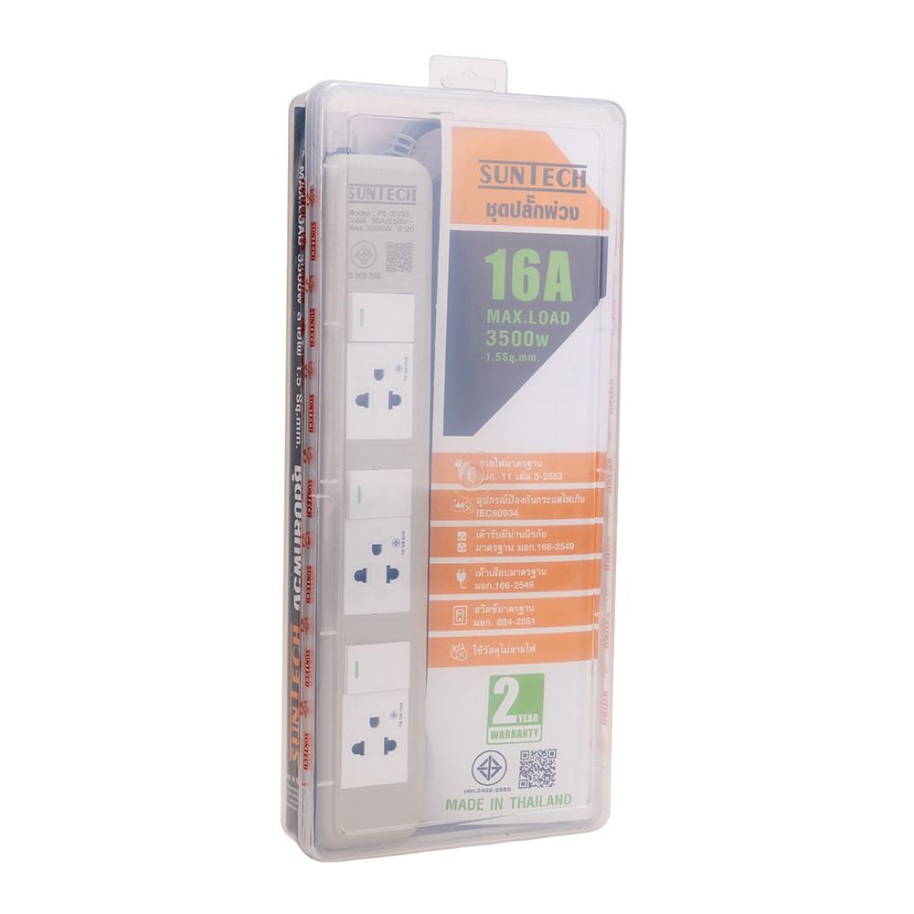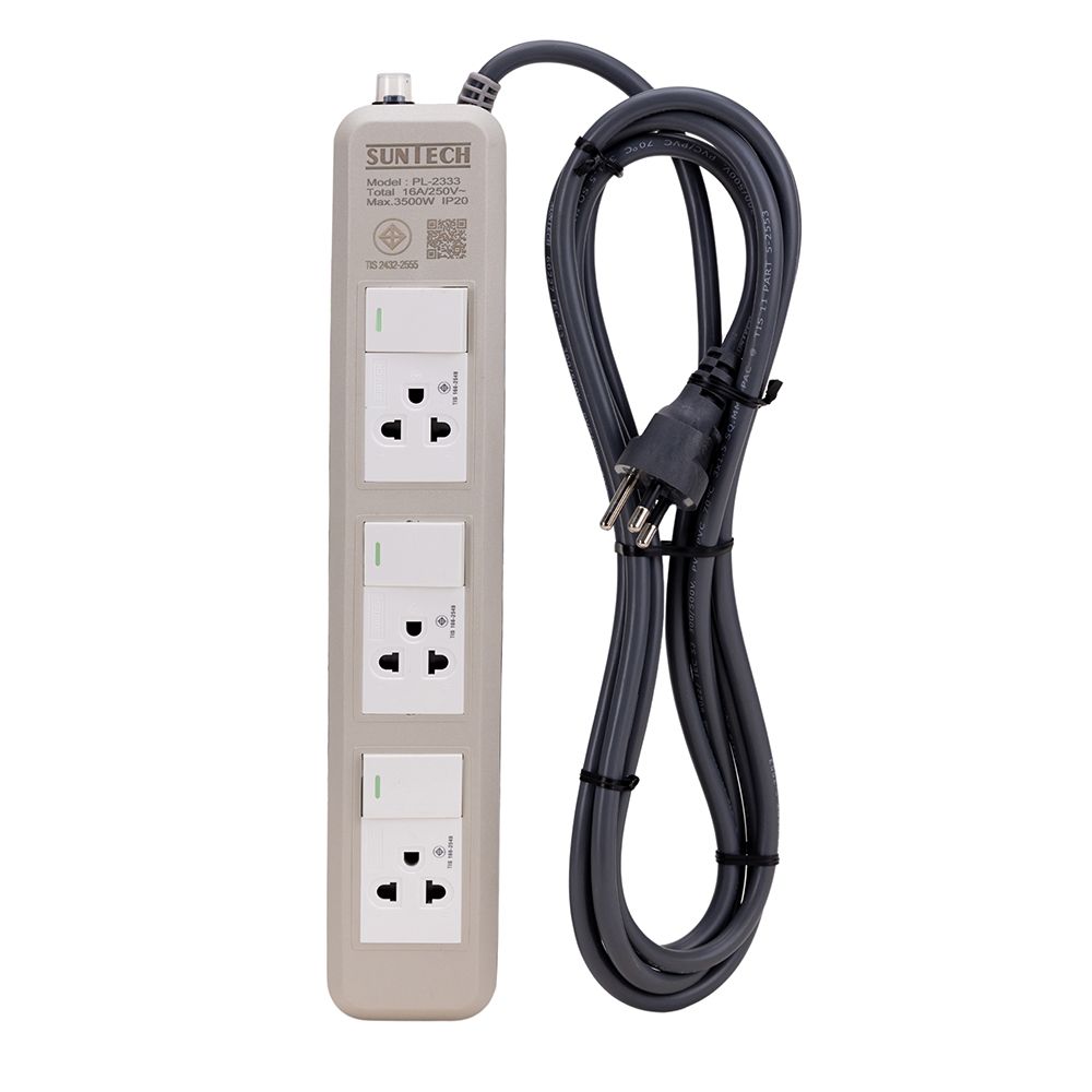 Ổ cắm điện cao cấp Suntech PL 2333 3m chống quá tải, 2200W 250V 16A